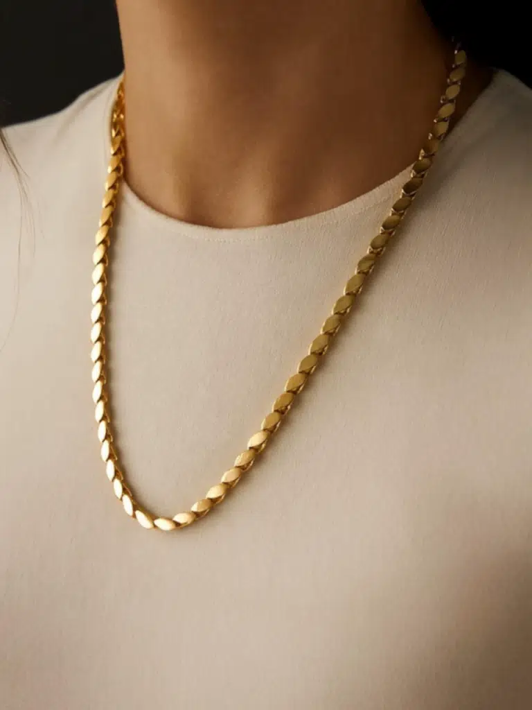 Modern ve zarif görünüme sahip Altın Renk Arpa Serisi Kadın Kolye, özel tasarım parlak yapısıyla şıklığınızı ön plana çıkarır. Günlük kullanımda olduğu kadar özel davetlerde de kombinlerinizi tamamlayacak ideal bir aksesuardır.