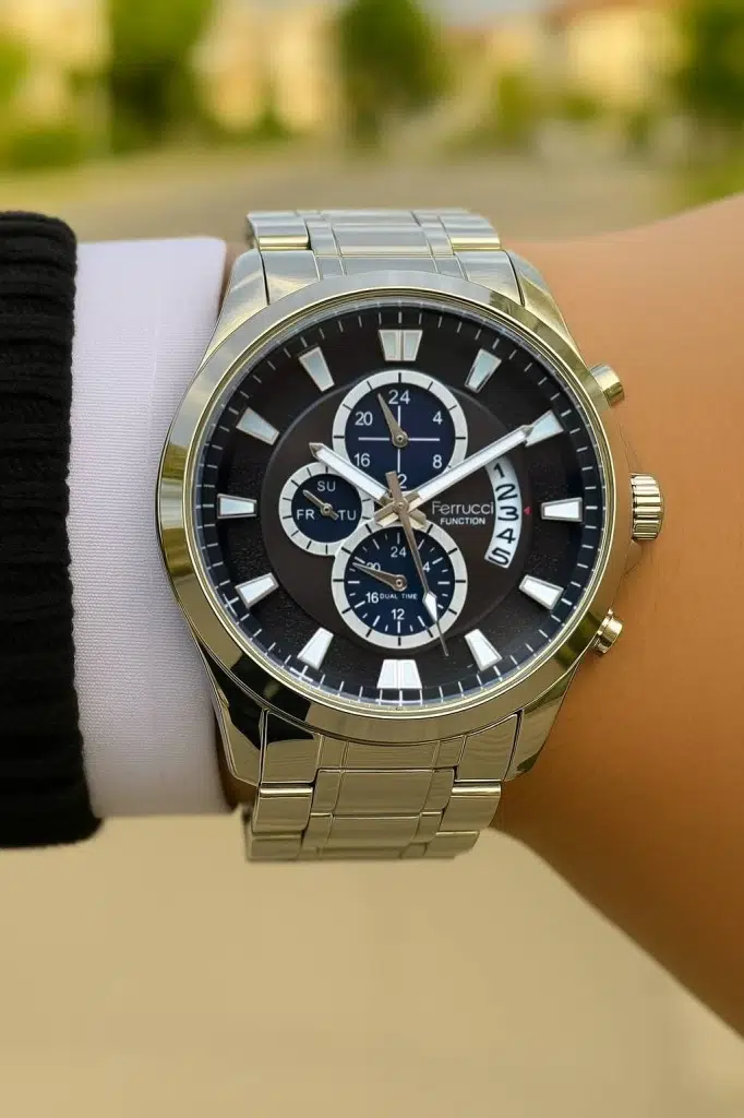 ✔️ Siyah kadran – gümüş detaylı şık görünüm