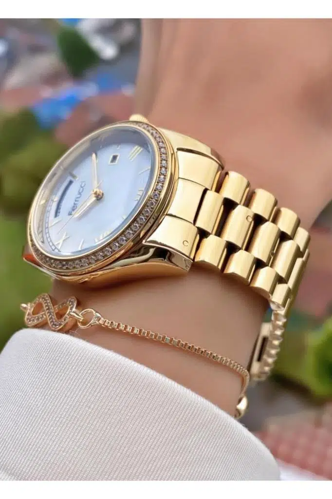 Ferrucci MRD11837 Altın Renk Çelik Kordon Kadın Kol Saati Bileklik Hediyeli
