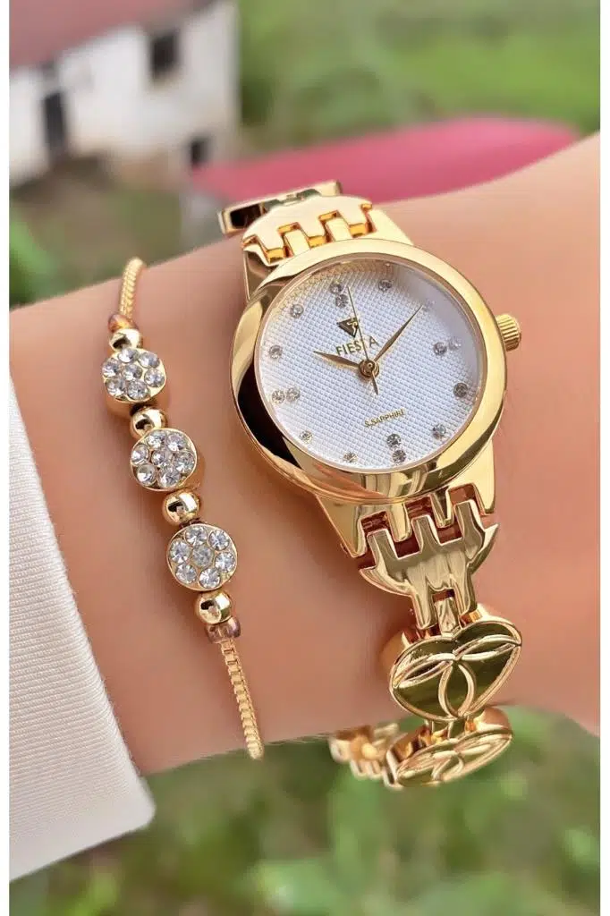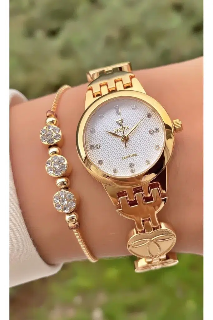 Fiesta MRD11914 Altın Sarısı Çelik Kordon Kadın Kol saati Bileklik Hediyeli 2 yıl boyunca garantilidir.
