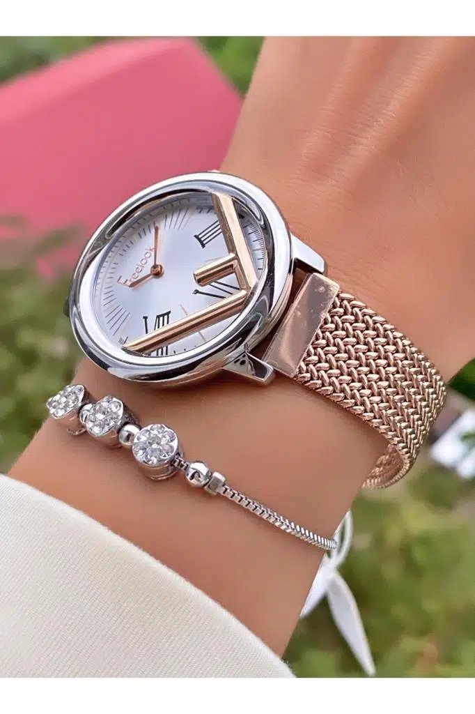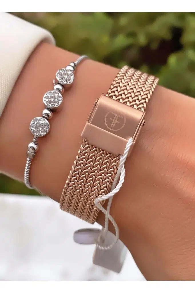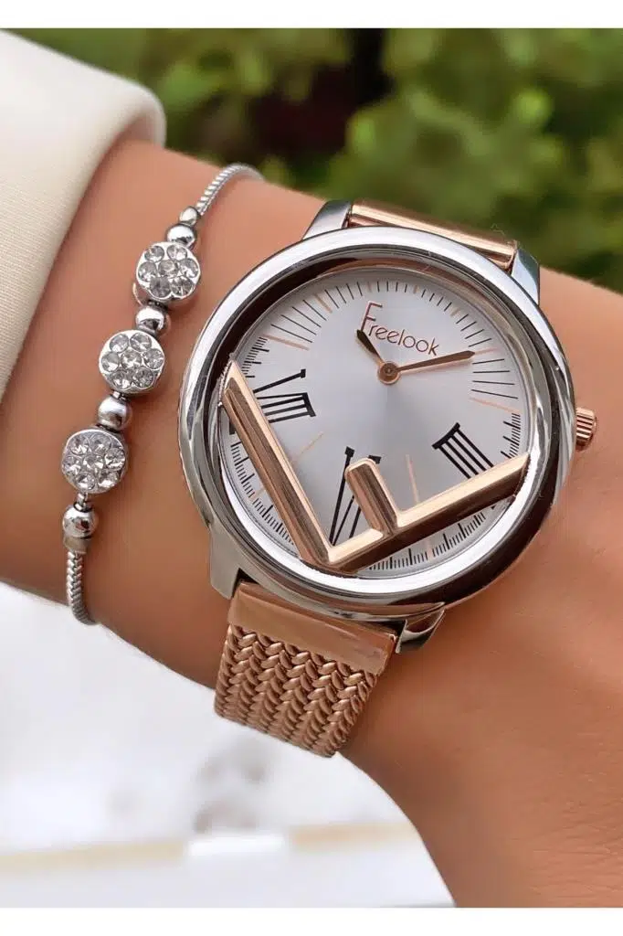Freelook MRD11453 Rose Gümüş Çelik Kordon Kadın Kol Saati Bileklik Hediyeli