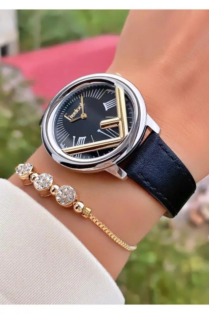 Freelook MRD11456 Siyah Deri Kordon Kadın Kol Saati Bileklik Hediyeli 2 yıl boyunca garantilidir.