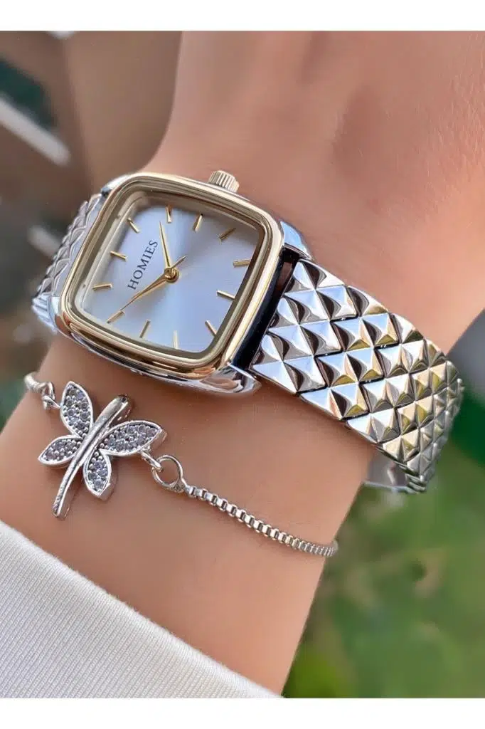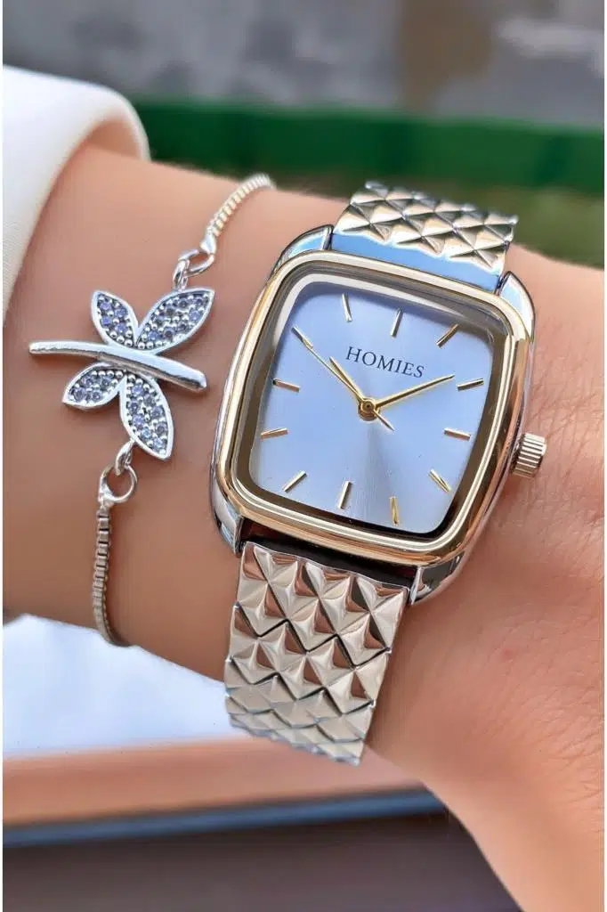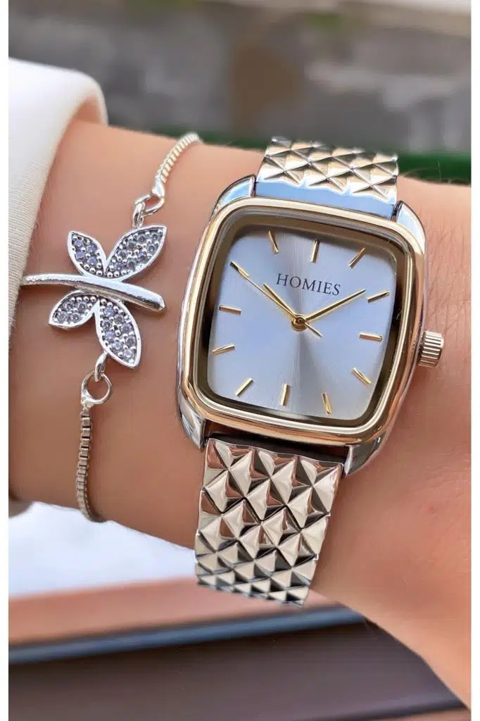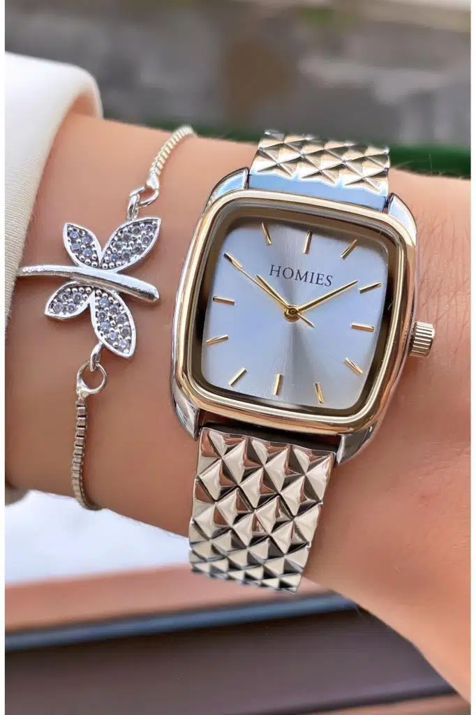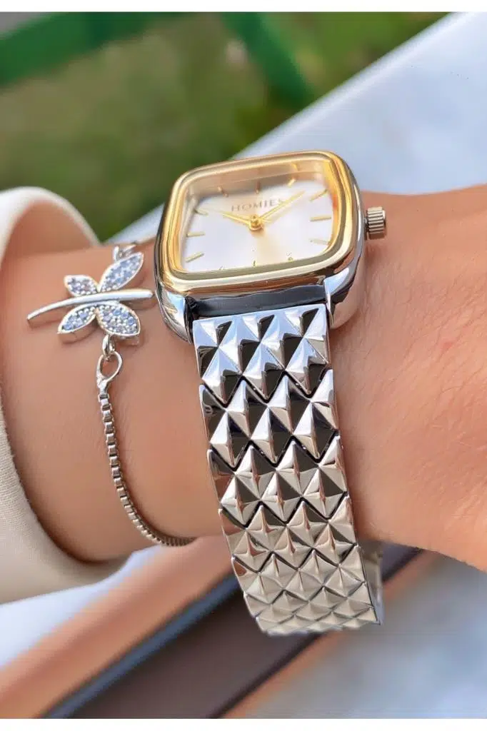 Homies MRD11273 Sarı Gümüş Renk Kadın Kol Saati Bileklik Hediyeli
