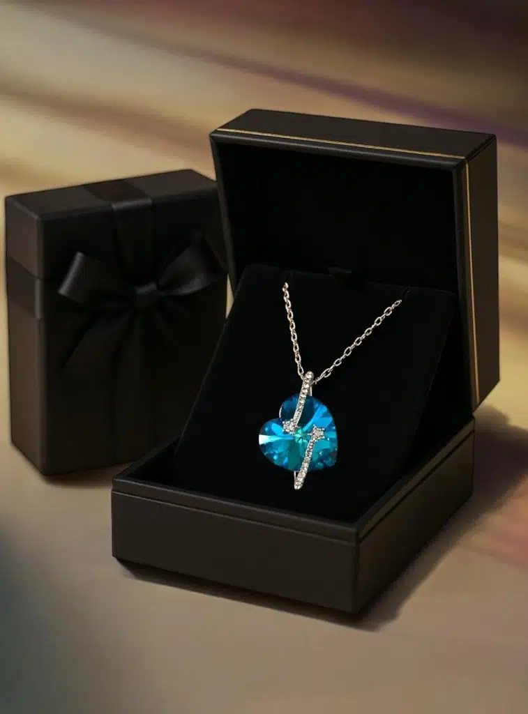Işıltılı mavi taş detayıyla öne çıkan Merand Kalpli Kolye, sevgililer günü, doğum günü ve yıl dönümü hediyesi için ideal bir seçimdir.