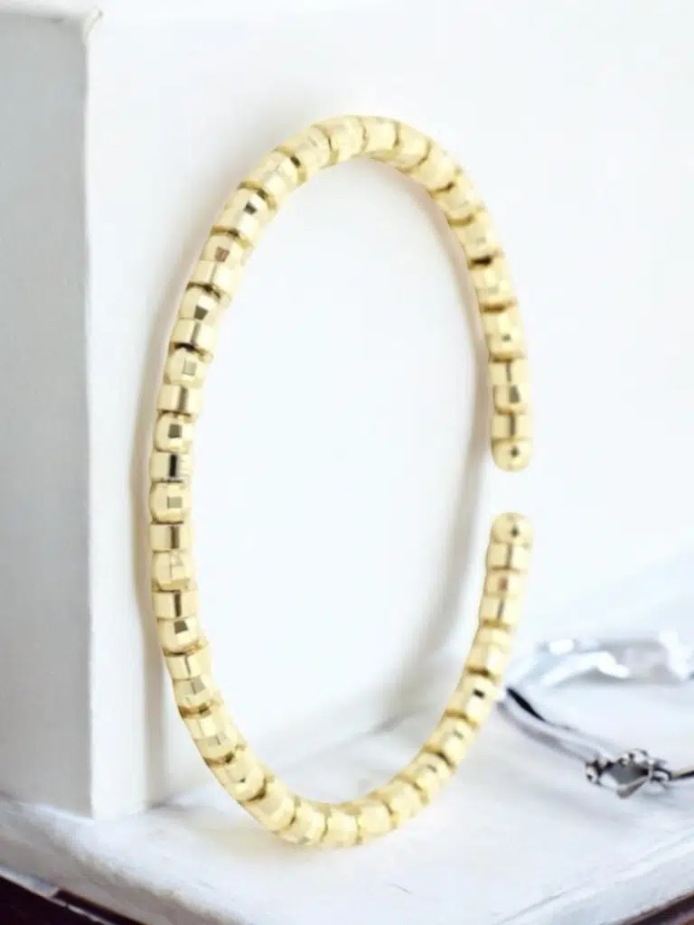 Merand altın renk çelik kelepçe bileklik, parlak görünümüyle şıklığınızı tamamlayan modern bir tasarımdır. Paslanmaz, kararma yapmaz ve uzun ömürlüdür. Günlük kullanım ve özel günler için ideal olan bu zarif kelepçe, hediye için de mükemmel bir seçimdir.