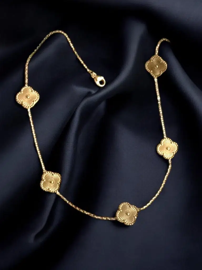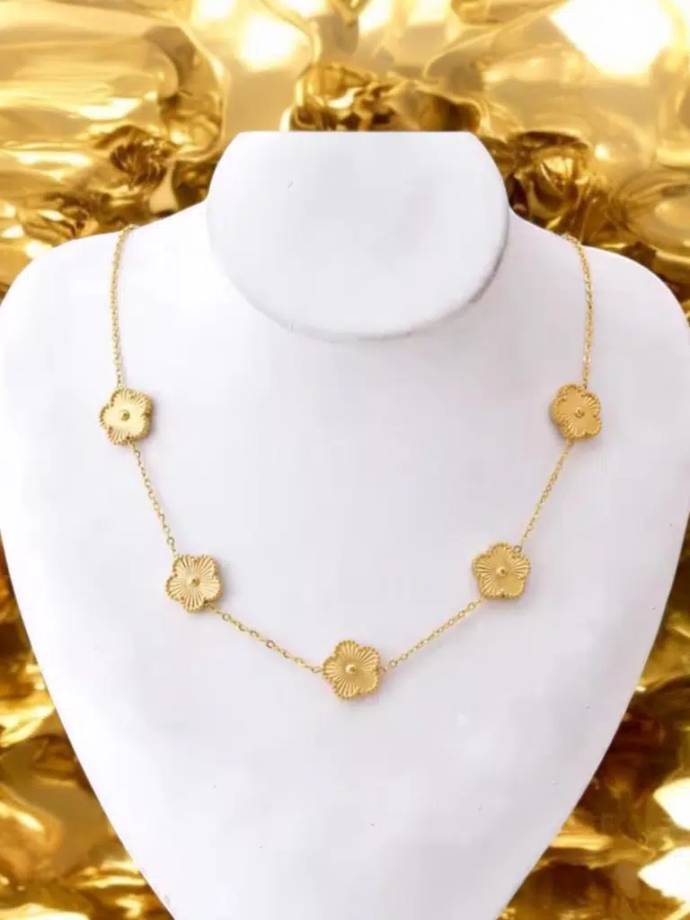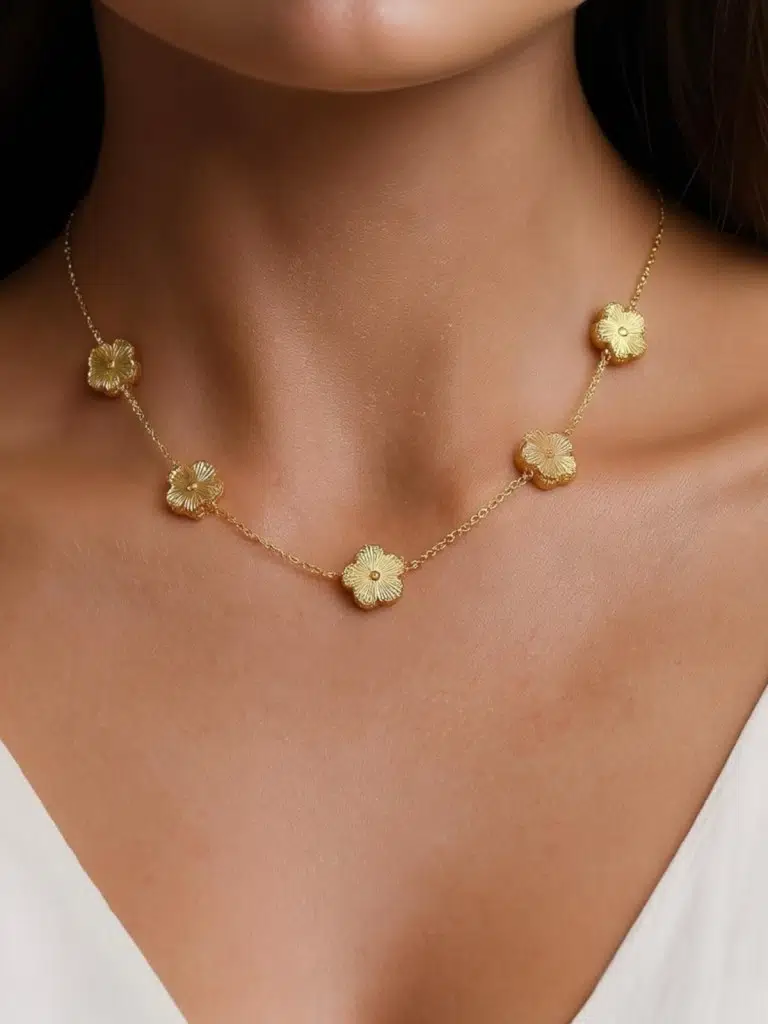 Altın renkli zincir üzerine işlenmiş zarif çiçek motifleriyle tasarlanan Merand kadın kolye, şıklığı ve zarafeti bir araya getirir. Paslanmaz çelikten üretilmiş olup kararma yapmaz ve uzun süreli parlaklığını korur. Hafif yapısı sayesinde gün boyu konforla kullanılabilir. Günlük kombinlerinizi tamamlamak veya özel davetlerde stilinize ışıltı katmak için ideal bir seçimdir. Sevdiklerinize hediye edebileceğiniz şık ve özel bir aksesuardır.