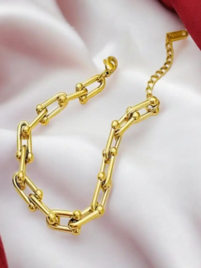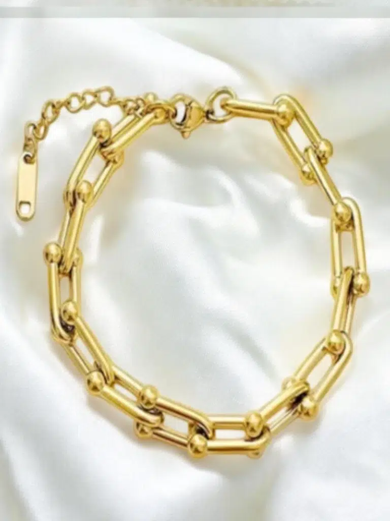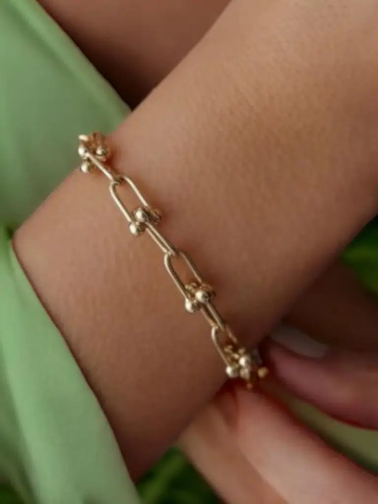 Günlük kombinlerinize zarif bir dokunuş katacak altın renk top detaylı zincir bileklik, modern ve minimalist tasarımıyla öne çıkıyor. Sağlam yapısı ve parlak kaplamasıyla uzun süre kullanım imkanı sunar. Özel günlerde, davetlerde veya günlük kullanımda stilinizi tamamlayacak şık bir aksesuardır.