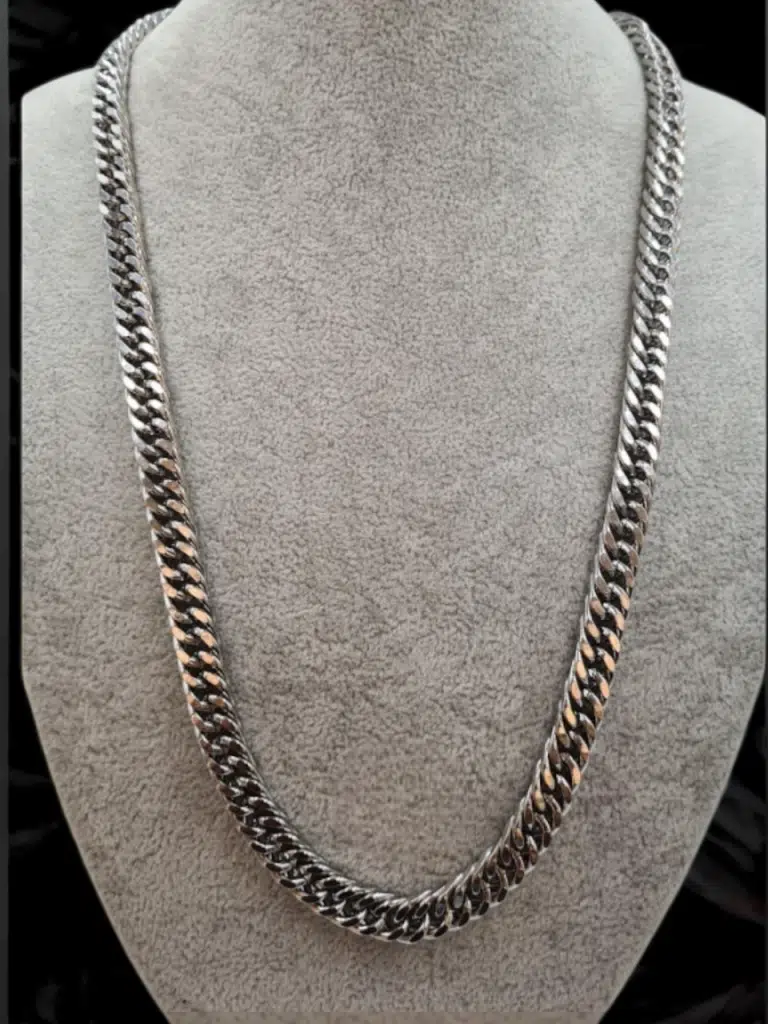 Şıklığınızı öne çıkaran paslanmaz çelik erkek zincir kolye, günlük kullanım ve özel davetler için ideal bir aksesuardır. Kalın ve dayanıklı yapısı sayesinde uzun ömürlü kullanım sunar. Siyah ve beyaz tonlardaki modern tasarımıyla spor kombinlerden klasik giyime kadar her tarza uyum sağlar. Alerji yapmayan çelik malzeme ile üretilmiştir, kararma yapmaz. Hediye kutusunda gönderim yapılır.