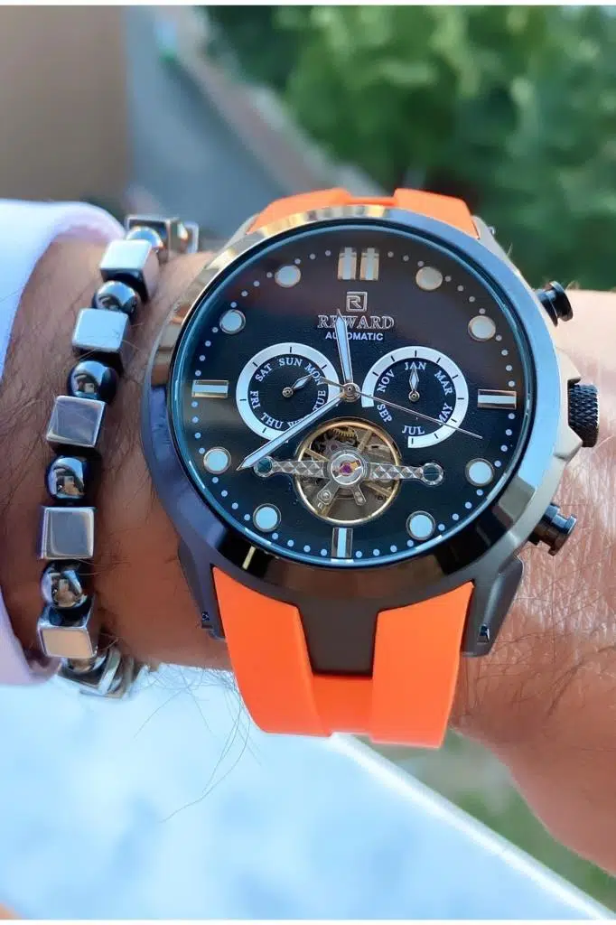 Reward MRD11517 Turuncu Renk Silikon Kordon Erkek Kol Saati Bileklik Hediyeli