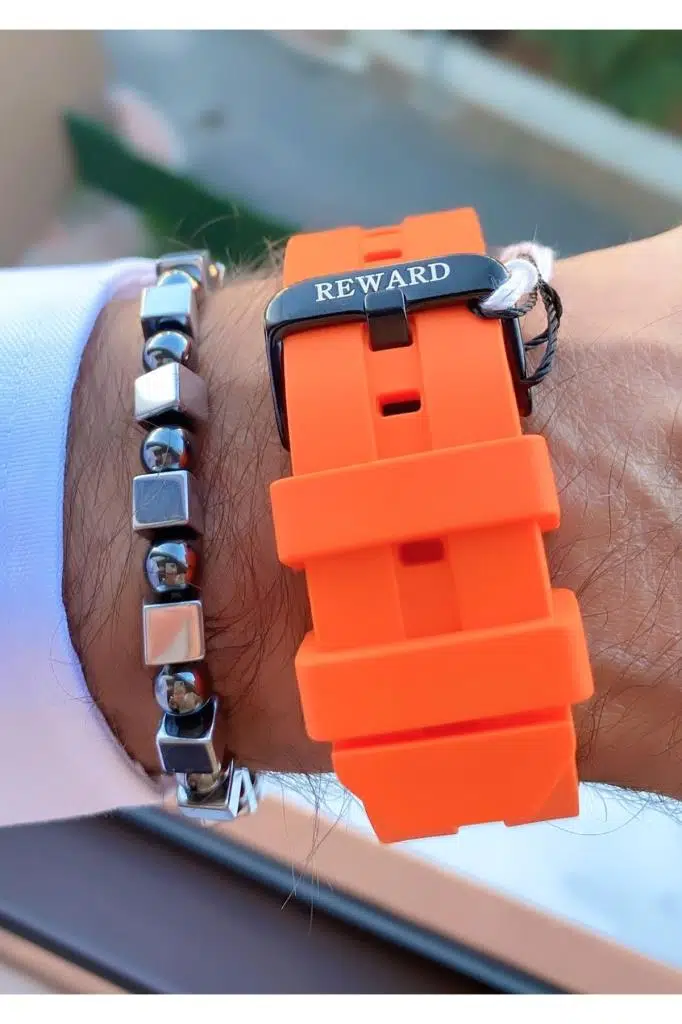 Reward MRD11517 Turuncu Renk Silikon Kordon Erkek Kol Saati Bileklik Hediyeli 2 yıl boyunca garantilidir.