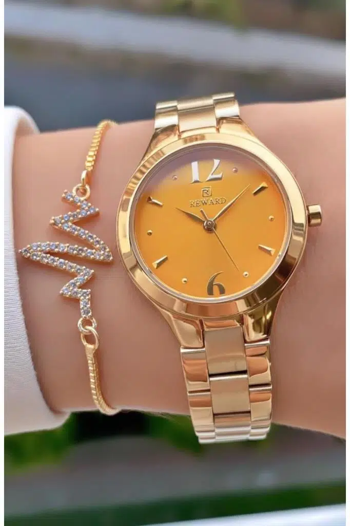 Reward MRD11864 Altın Renk Çelik Kordon Kadın Kol Saati Bileklik Hediyeli