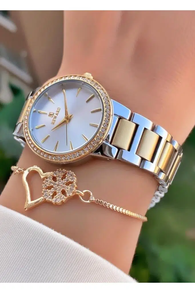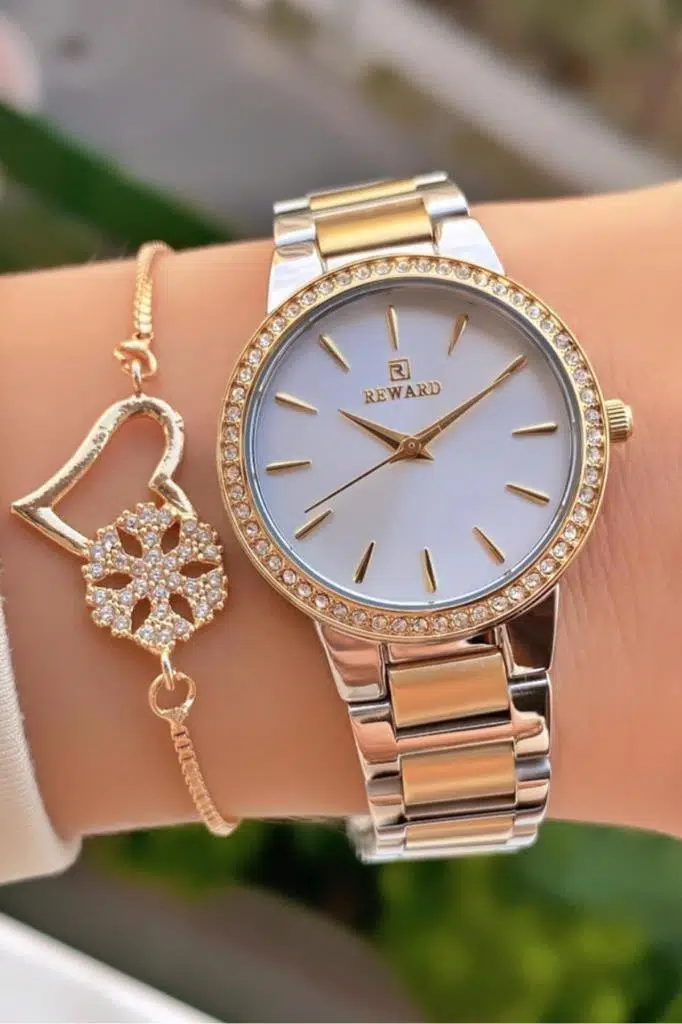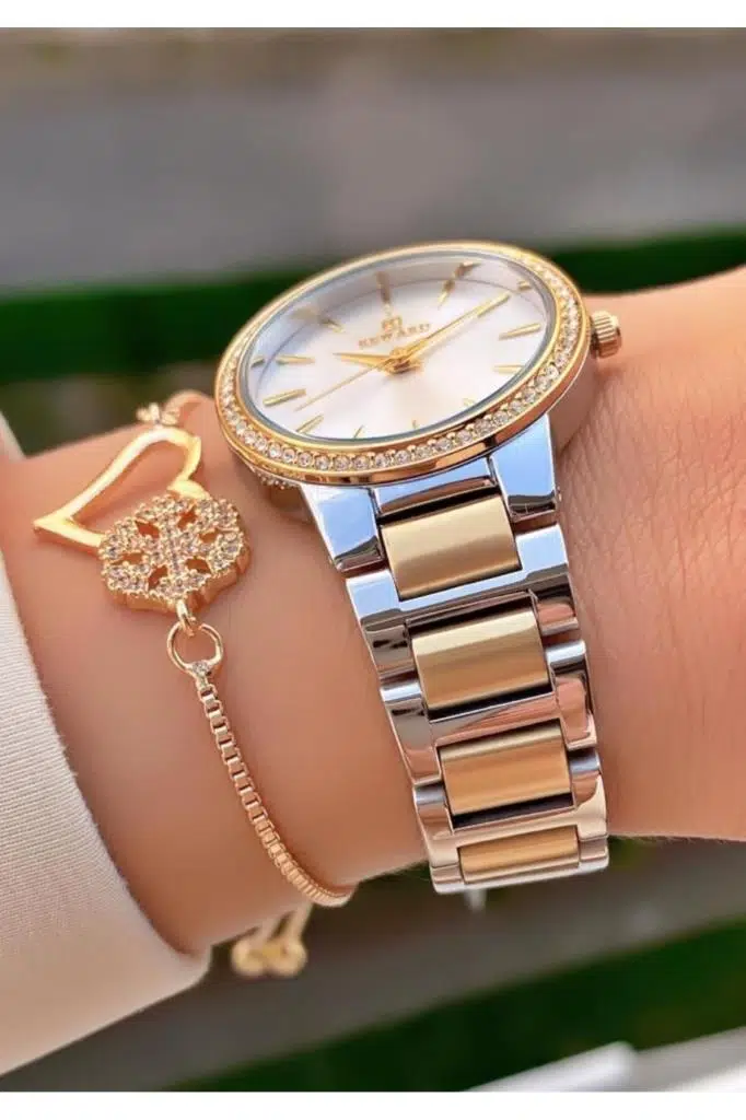 Reward MRD11869 Sarı Gümüş Renk Çelik Kordon Kadın Kol Saati Bileklik Hediyeli