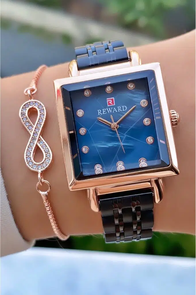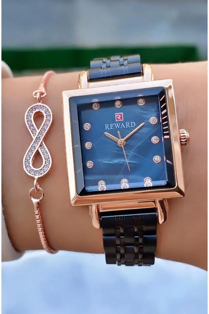 Reward MRD11891 Rose Siyah Renk Çelik Kordon Kadın Kol Saati Bileklik Hediyeli
