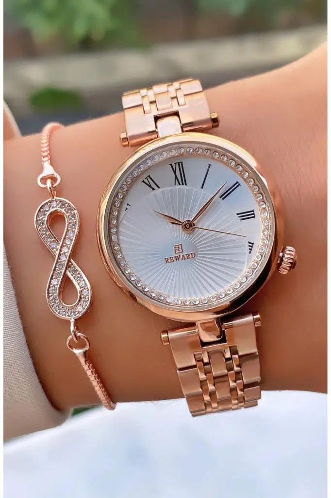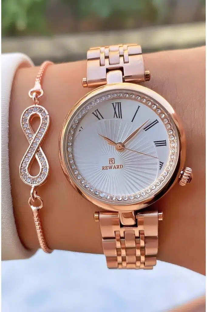 Reward MRD11896 Rose Gold Renk Çelik Kordon Kadın Kol Saati Bileklik Hediyeli