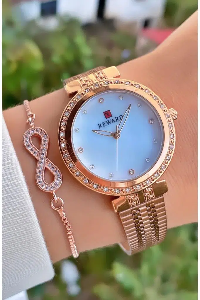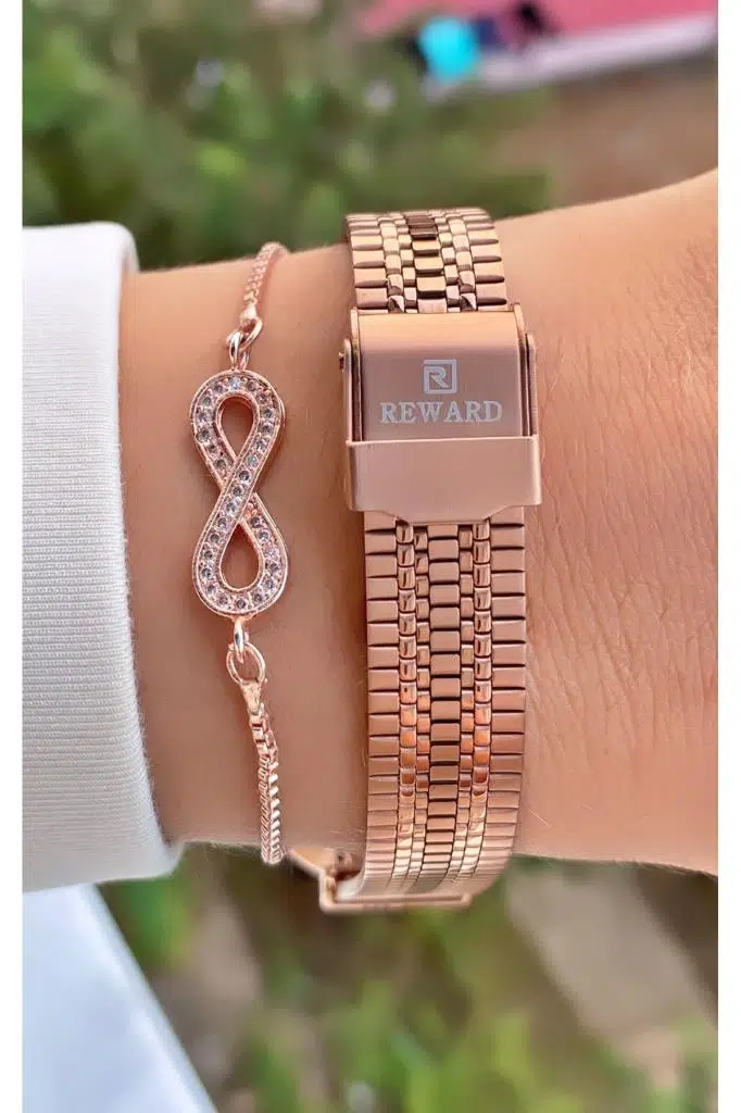 Reward MRD11904 Acı Kahve Renk Çelik Hasır Kordon Kadın Kol saati Bileklik Hediyeli