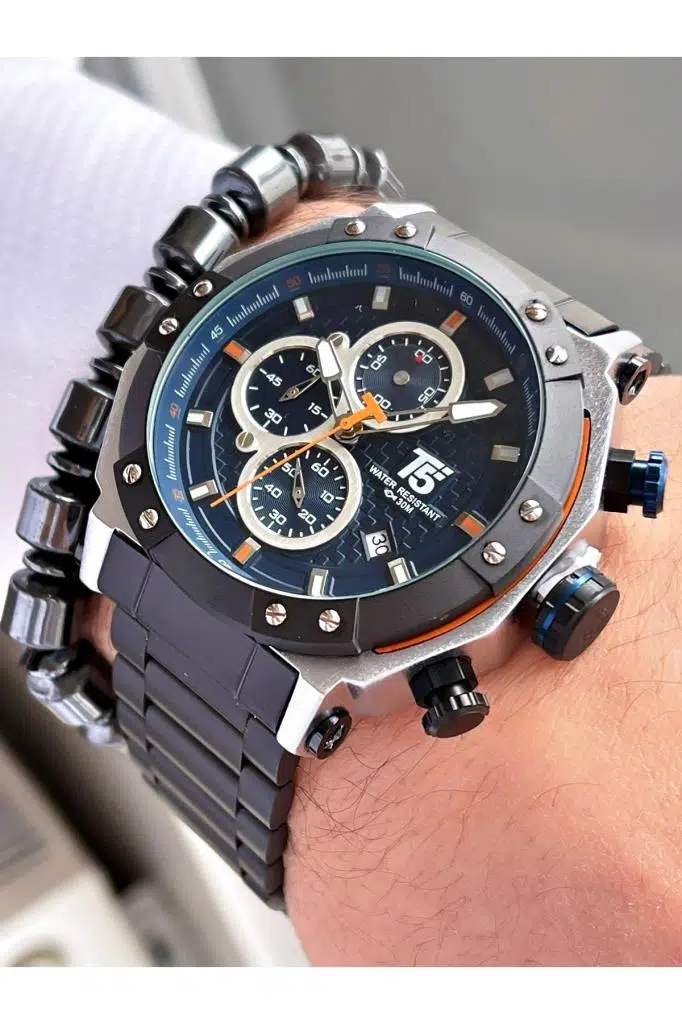 T5 Saat MRD11625 T5 Siyah Renk Fonksiyonlu Erkek Kol Saati Bileklik Hediyeli