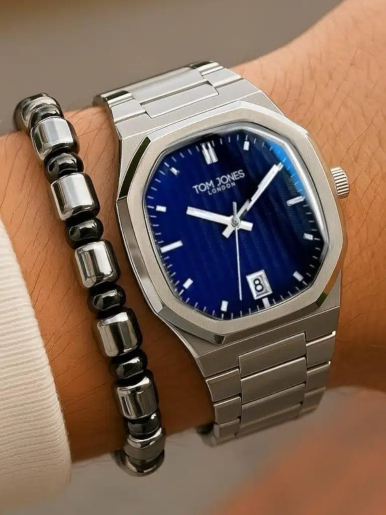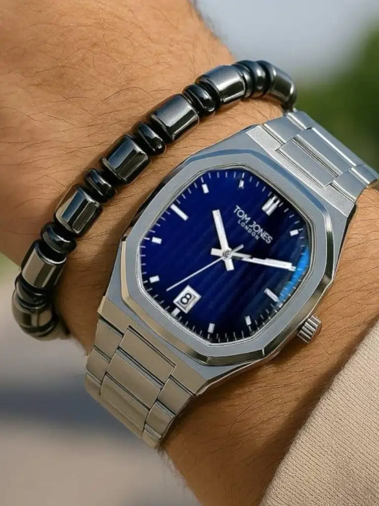Tom Jones London Erkek Kol Saati, modern tasarımı ve dikkat çekici mavi kadranı ile şıklığınızı tamamlıyor. Paslanmaz çelik kasası ve takvim göstergesi sayesinde hem günlük kullanımda hem de özel günlerde tarzınıza zarif bir dokunuş katıyor.