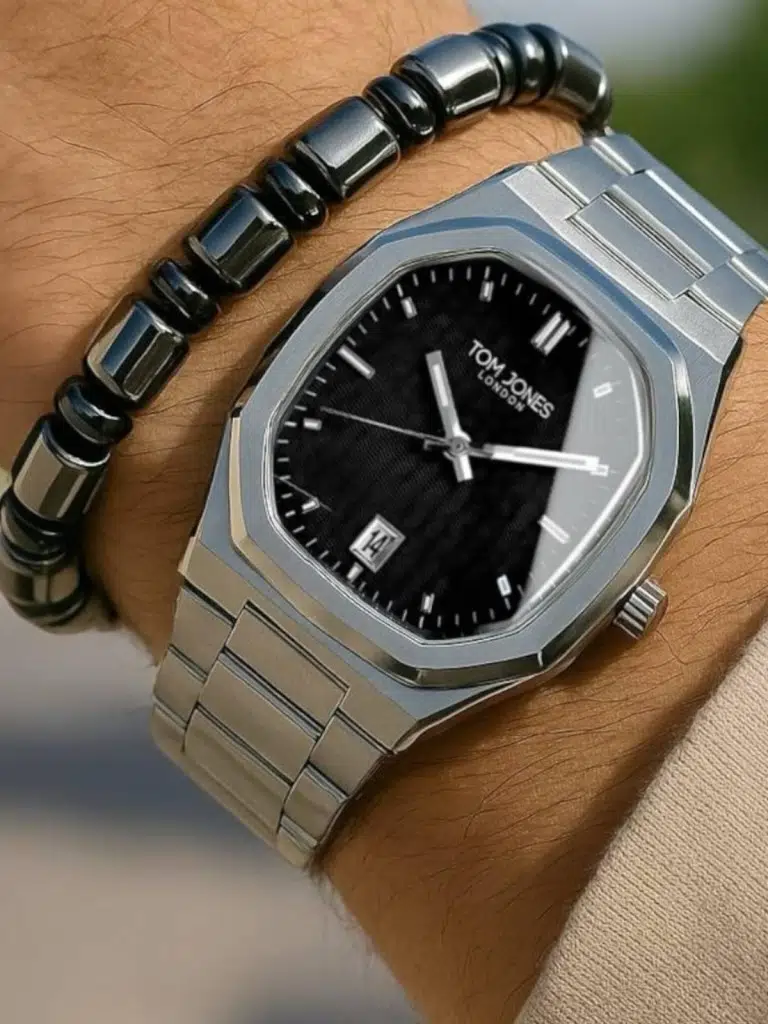 Tom Jones London Erkek Kol Saati, şık tasarımı ve dayanıklı çelik kasasıyla modern erkek stilini tamamlıyor. Siyah kadranı, takvim göstergesi ve zarif detayları ile hem günlük kullanım hem de özel günler için ideal.