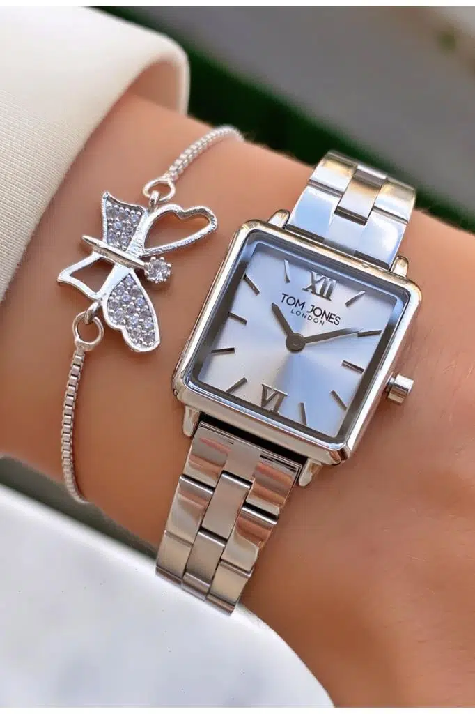 Tom Jones MRD11332 Gümüş Renk Kadın Kol Saati Bileklik Hediyeli 2 yıl boyunca garantilidir.
