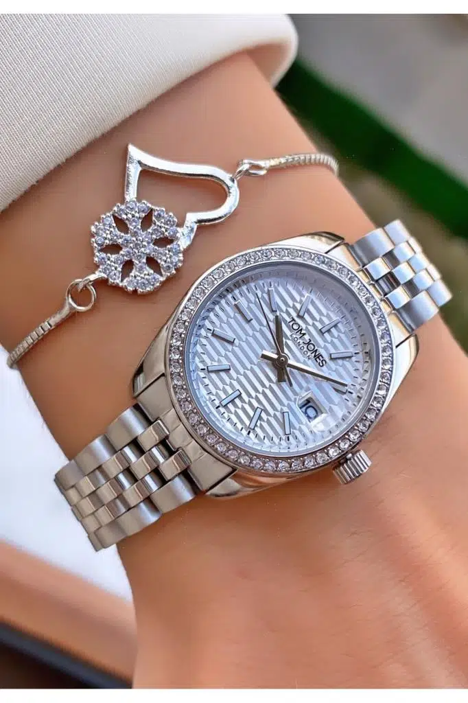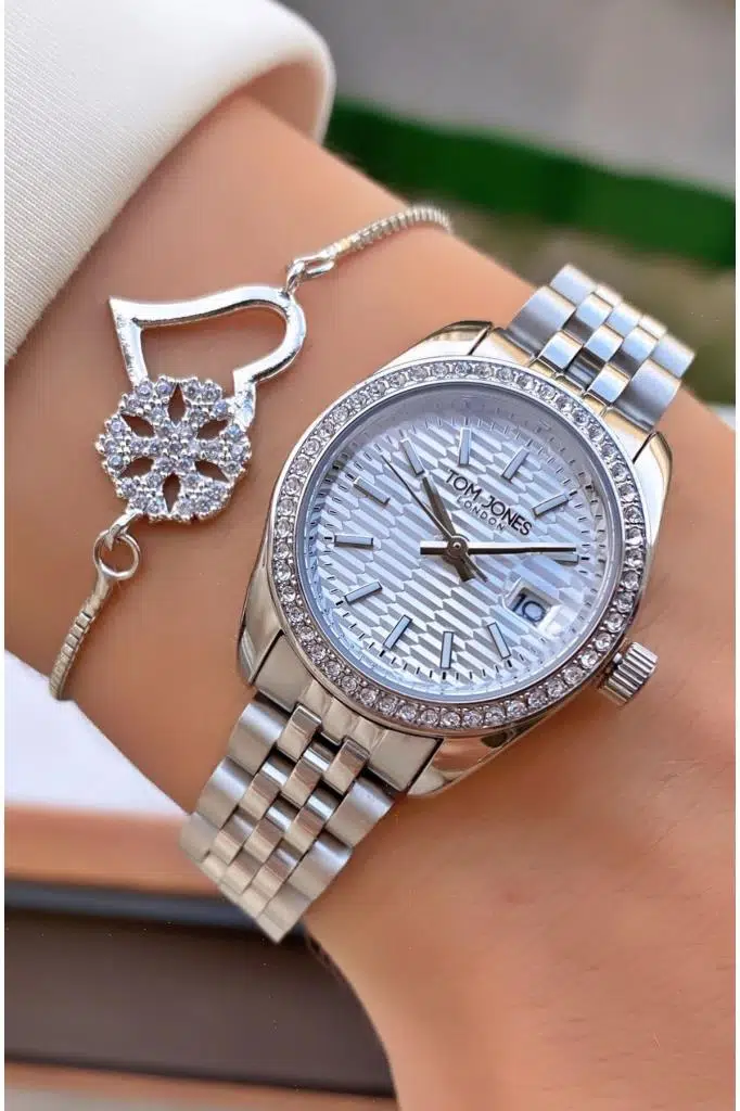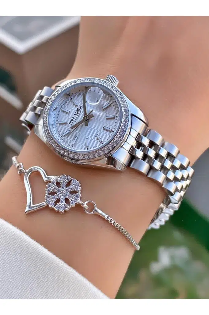 Tom Jones MRD11345 Gümüş Renk Kadın Kol Saati Bileklik Hediyeli