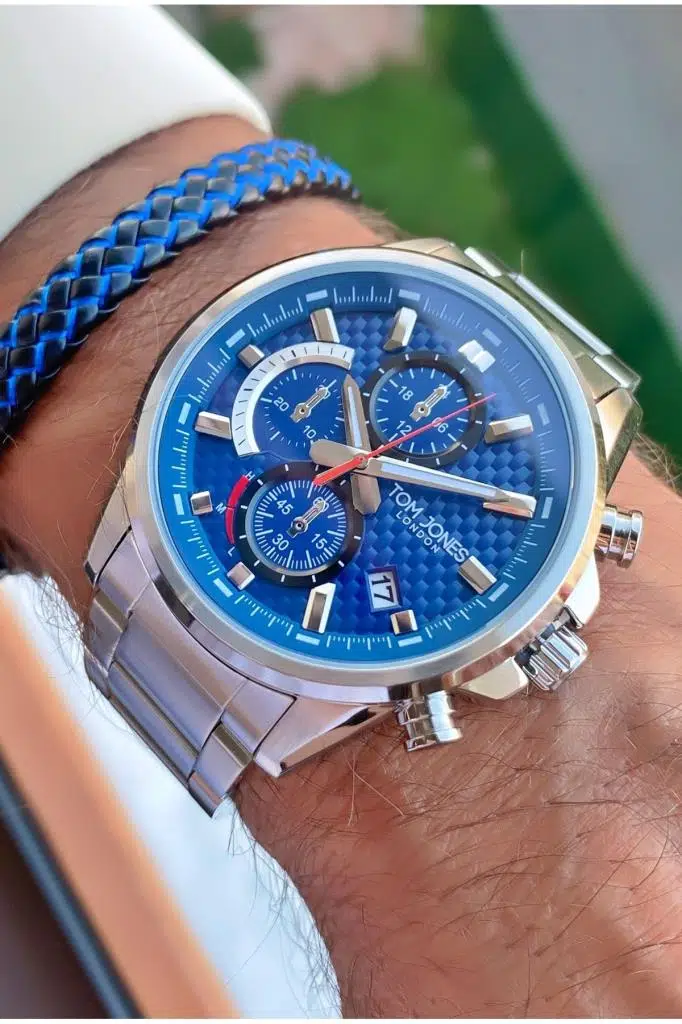 Tom Jones MRD11365 Gümüş Renk Büyük Kasa Erkek Kol Saati Bileklik Hediyeli 2 yıl boyunca garantilidir.