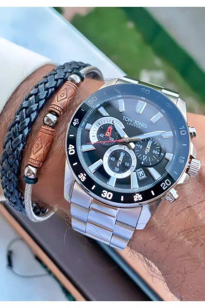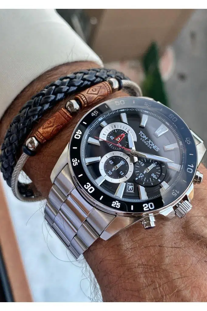 Tom Jones MRD11371 Gümüş Renk Büyük Kasa Erkek Kol Saati Kartlık Hediyeli