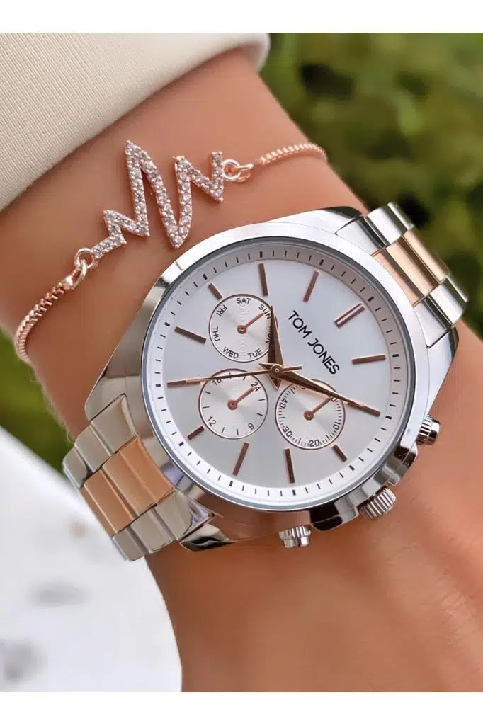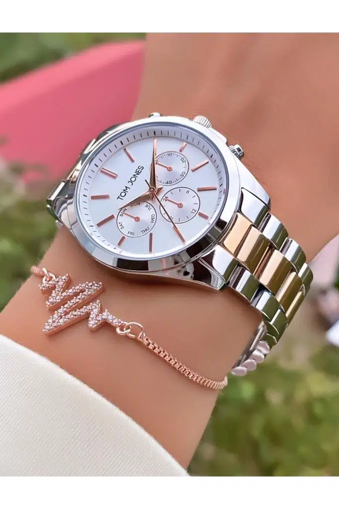 Tom Jones MRD11433 Rose Gümüş Renk Kadın Kol Saati Bileklik Hediyeli 2 yıl boyunca garantilidir.
