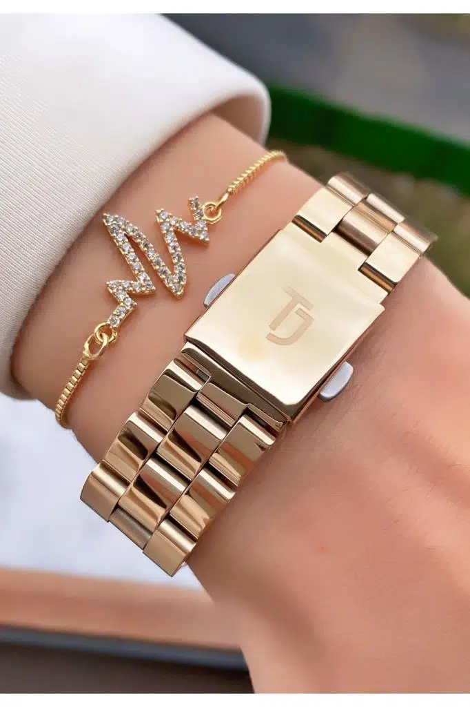 Tom Jones MRD11654 Altın Renk Büyük Kasa Kadın Kol Saati Bileklik Hediyeli