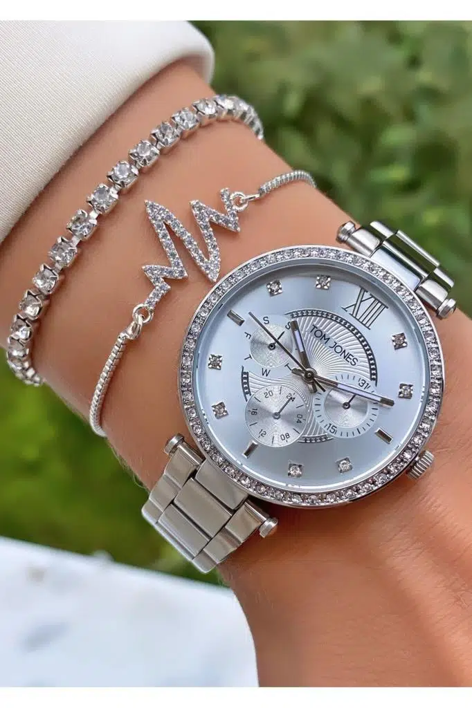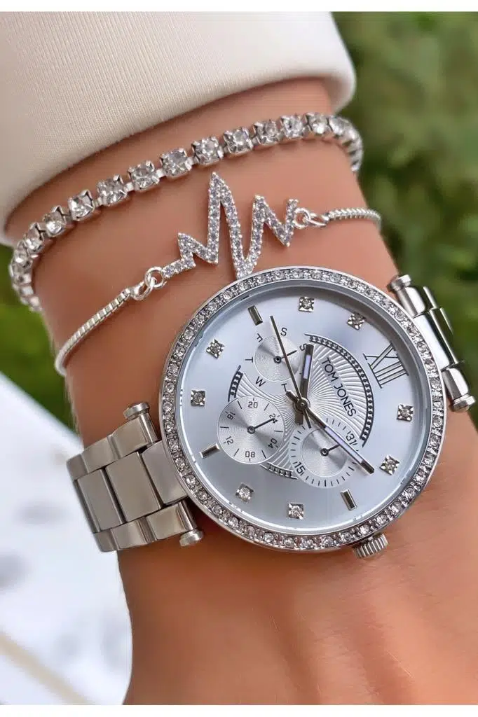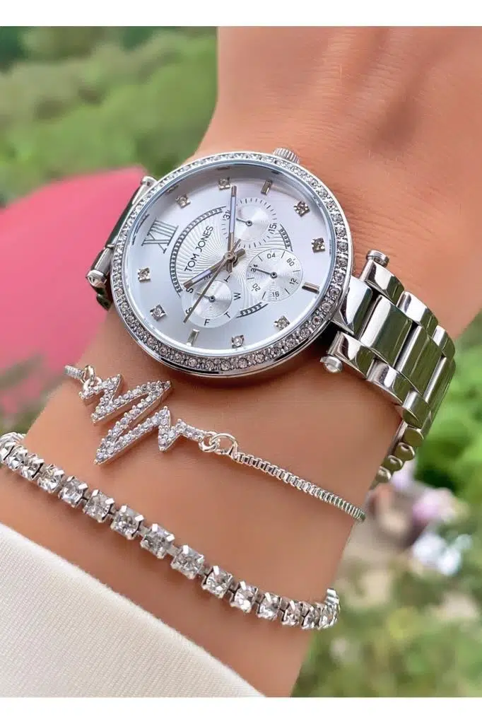 Tom Jones MRD11659 Gümüş Renk Kadın Kol Saati Bileklik Hediyeli