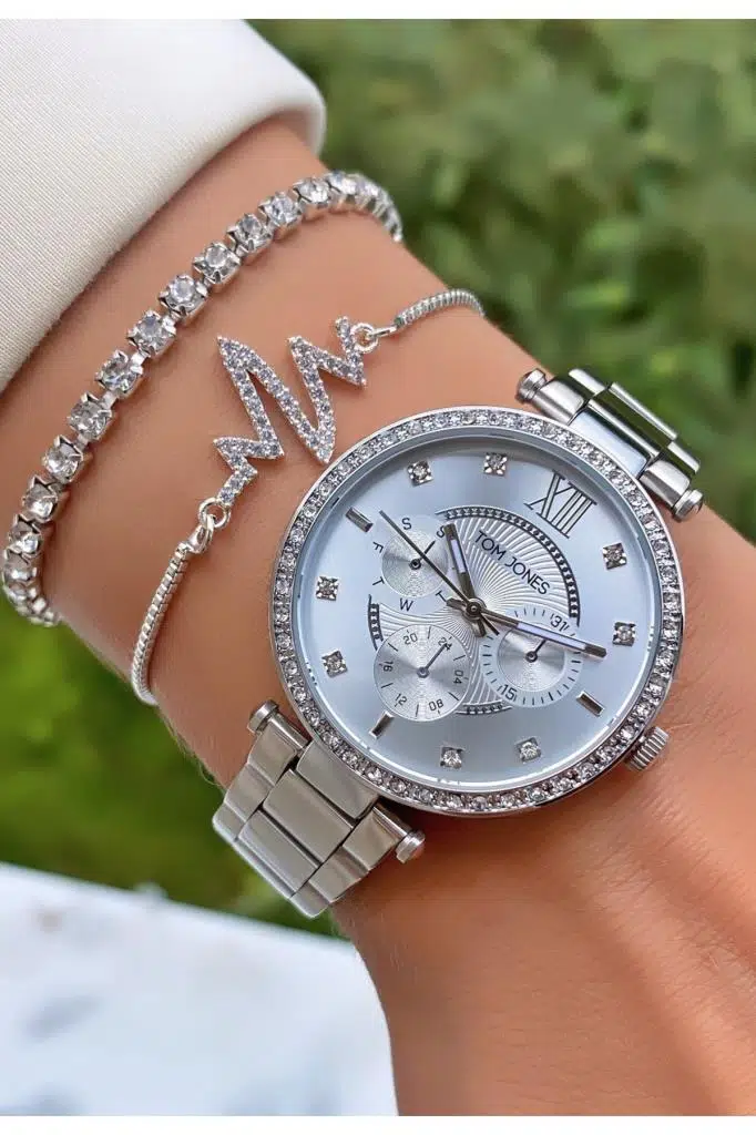Tom Jones MRD11659 Gümüş Renk Kadın Kol Saati Bileklik Hediyeli 2 yıl boyunca garantilidir.