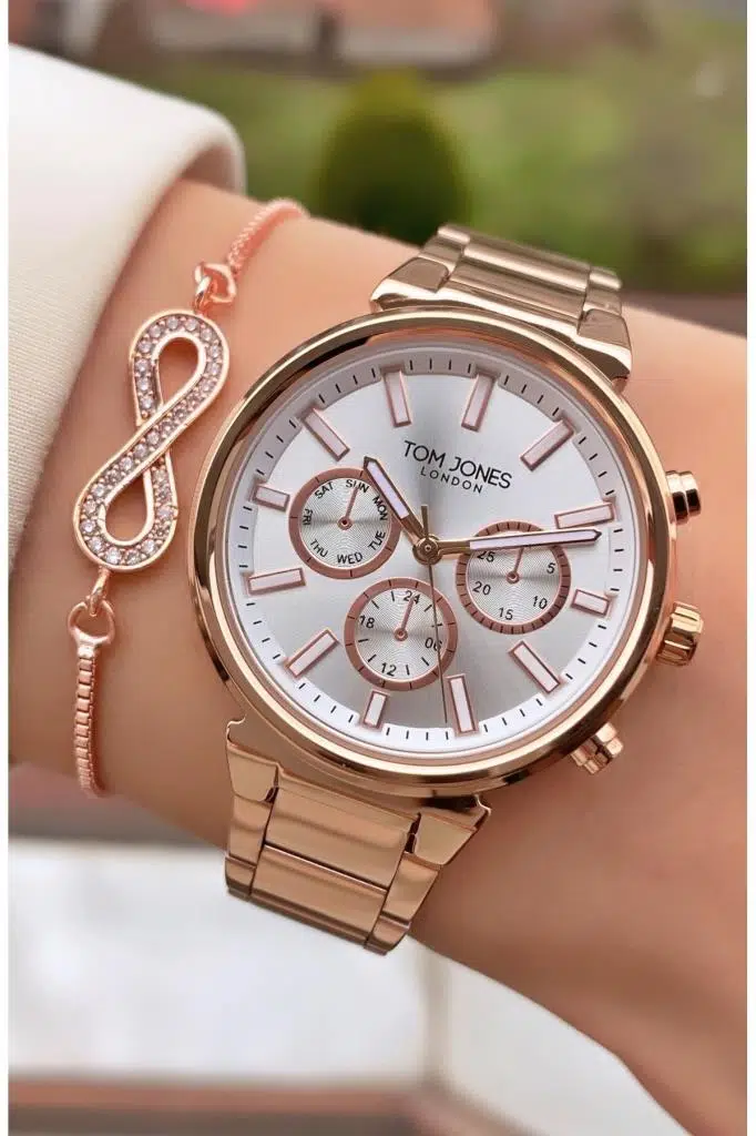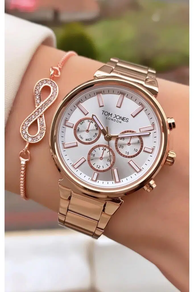Tom Jones MRD11663 Rose Gold Renk Kadın Kol Saati Bileklik Hediyeli 2 yıl boyunca garantilidir.