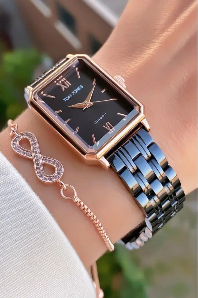 Tom Jones MRD11943 Rose Siyah Renk Kadın Kol Saati Bileklik Hediyeli 2 yıl boyunca garantilidir.