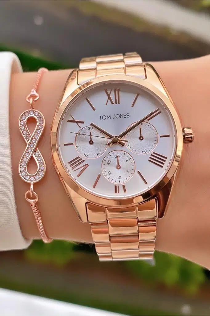 Tom Jones MRD11952 Rose Gold Renk Kadın Kol Saati Bileklik Hediyeli 2 yıl boyunca garantilidir.