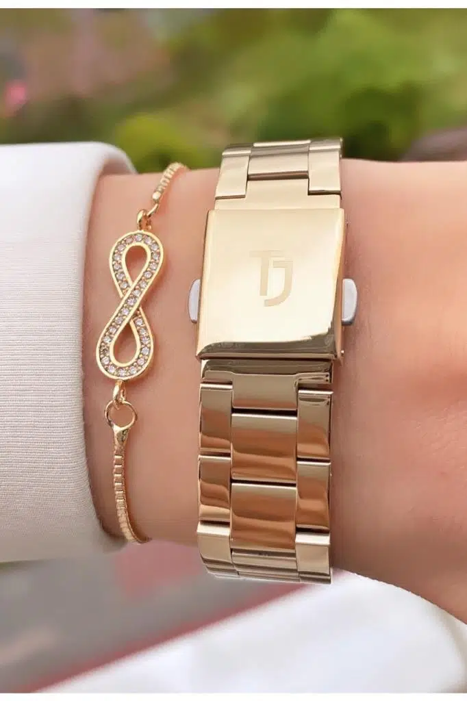 Tom Jones MRD11975 Altın Renk Büyük Kasa Kadın Kol Saati Bileklik Hediyeli
