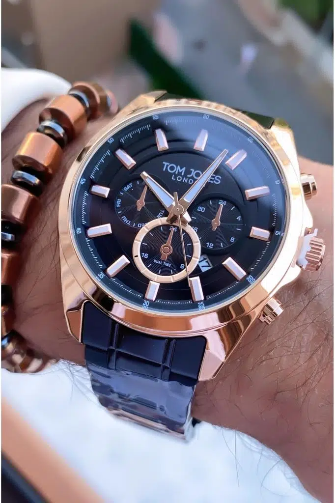 Tom Jones MRD11997 Rose Siyah Renk Erkek Kol Saati Bileklik Hediyeli 2 yıl boyunca garantilidir.