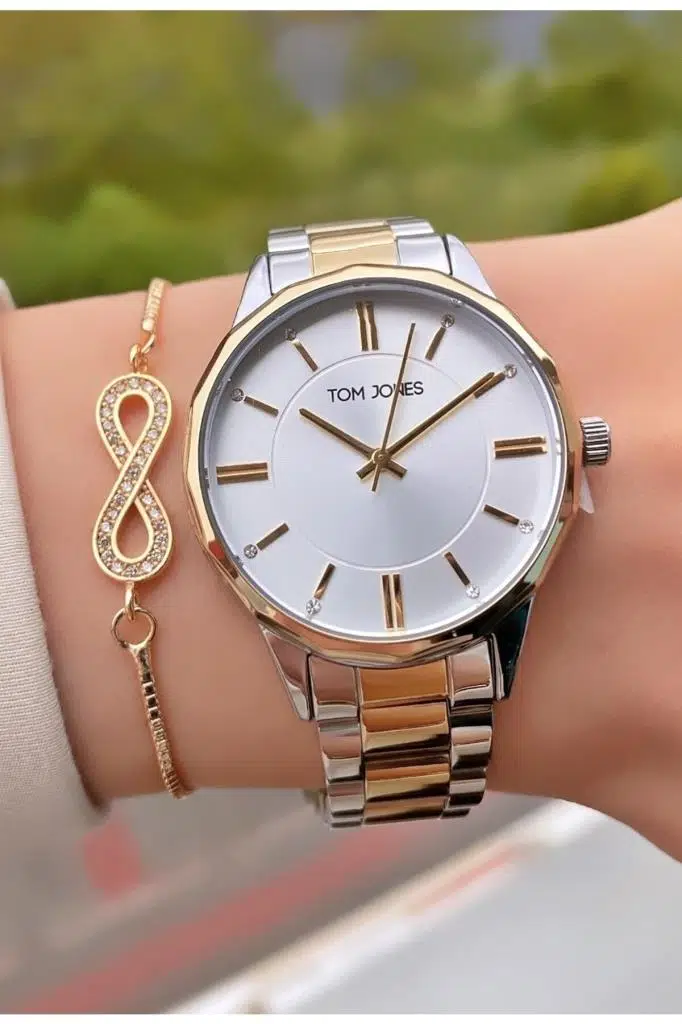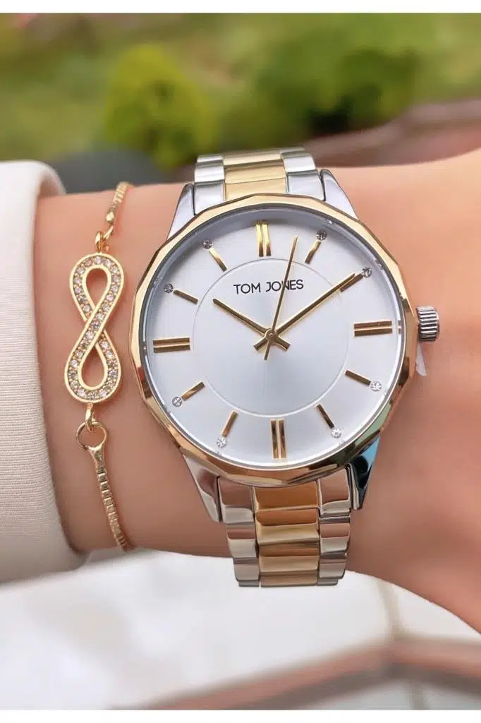 Tom Jones MRD12029 Sarı Gümüş Renk Kadın Kol Saati Bileklik Hediyeli 2 yıl boyunca garantilidir.