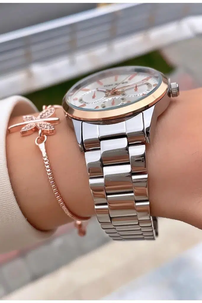 Tom Jones MRD12031 Rose Gümüş Renk Kadın Kol Saati Bileklik Hediyeli 2 yıl boyunca garantilidir.