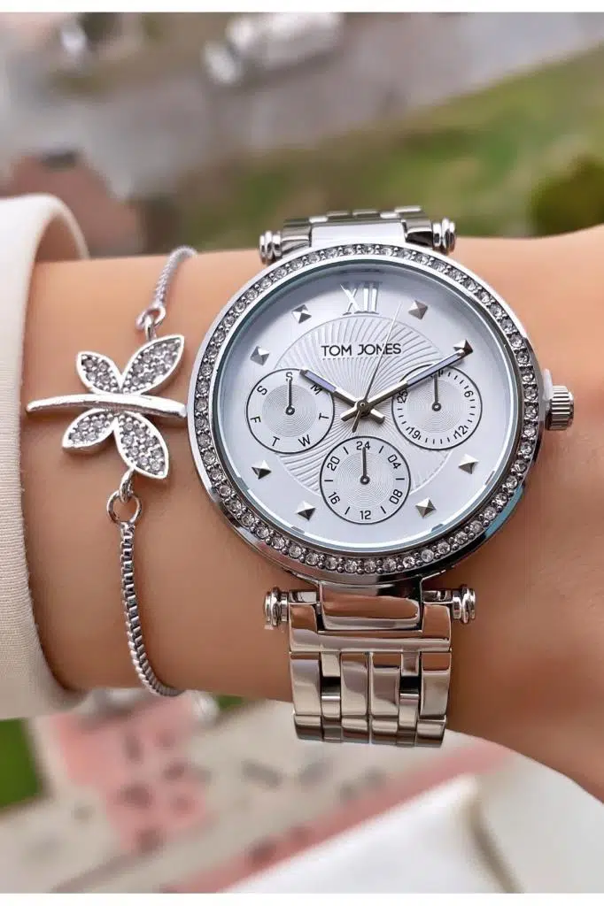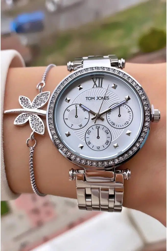 Tom Jones MRD12052 Gümüş Renk Kadın Kol Saati Bileklik Hediyeli