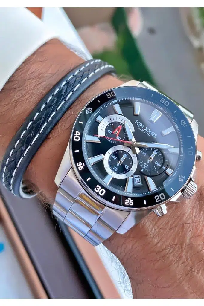 Tom Jones MRD12175 Gümüş Renk Erkek Kol Saati Bileklik Hediyeli
