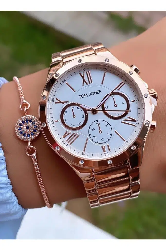 Tom Jones MRD12189 Rose Gold Renk Kadın Kol Saati Bileklik Hediyeli 2 yıl boyunca garantilidir.