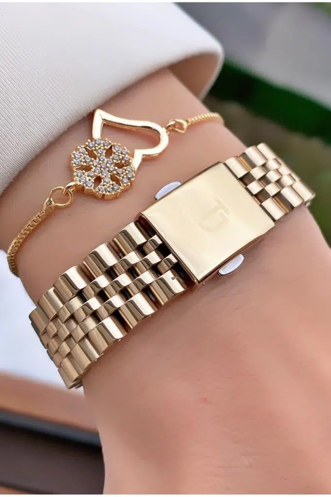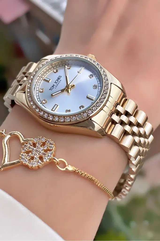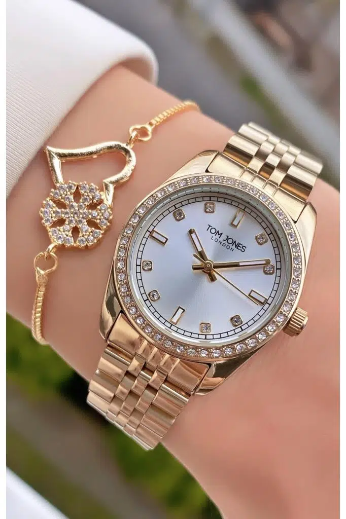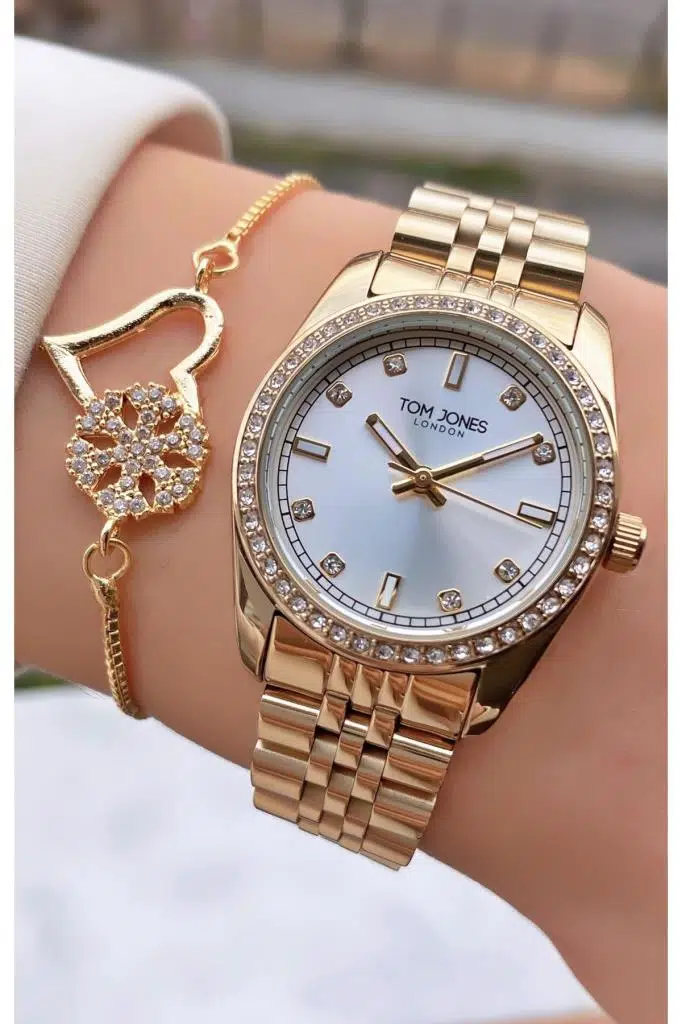 Tom Jones MRD12193 Altın Renk Kadın Kol Saati Bileklik Hediyeli
