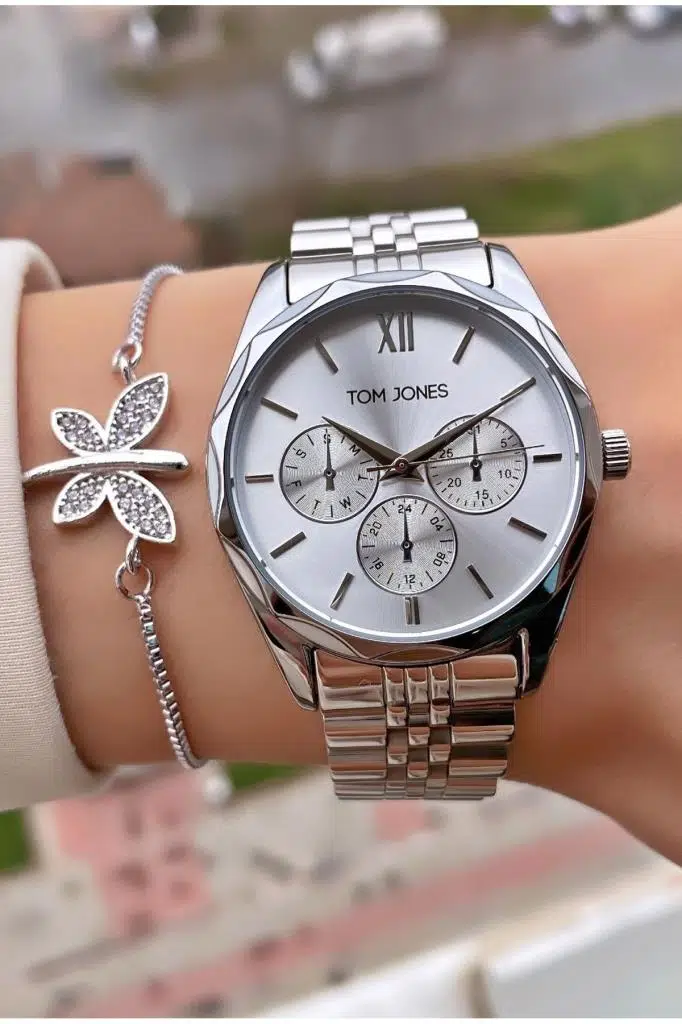 Tom Jones MRD12266 Gümüş Renk Çelik Hasır Kordon Kadın Kol Saati Bileklik Hediyeli 2 yıl boyunca garantilidir.