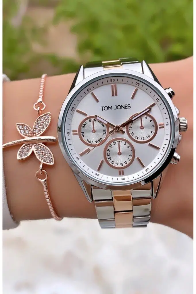 Tom Jones MRD12326 Sarı Gümüş Renk Takvimli Kadın Kol Saati Bileklik Hediyeli 2 yıl boyunca garantilidir.